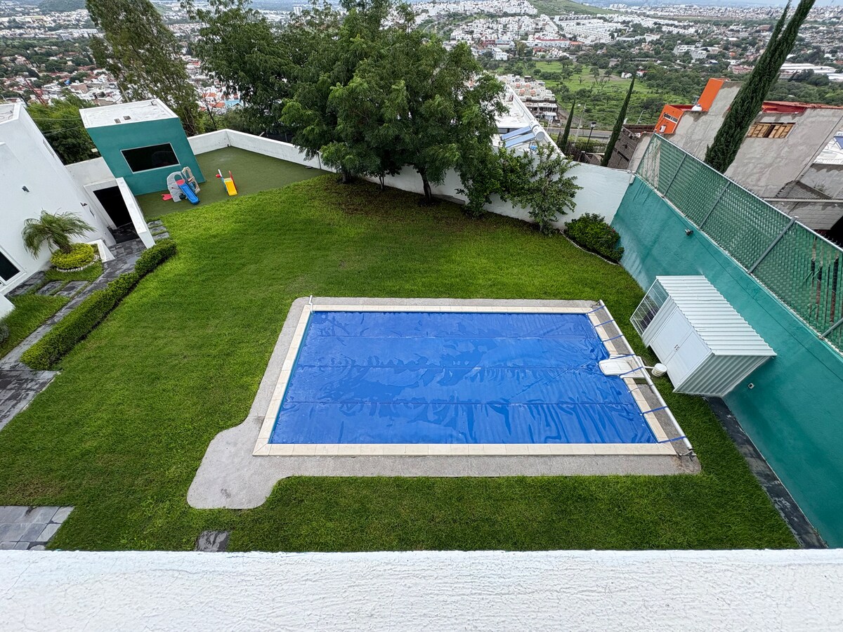 Tempat unik dengan pemandangan terbaik di Queretaro. Kolam renang, taman besar, teras dengan ruang makan untuk 8 orang, dapur besar dan lengkap di rumah utama, kamar mandi luar ruangan dengan pancuran, taman atap lengkap, peralatan olahraga, parkir tertutup. Satu apartemen memiliki dapur dan kulkas terpisah (penggunaan eksklusif). Alberca dan taman atap untuk penggunaan eksklusif. Dapur utama dan tempat parkir digunakan bersama dengan orang yang mengurus rumah.