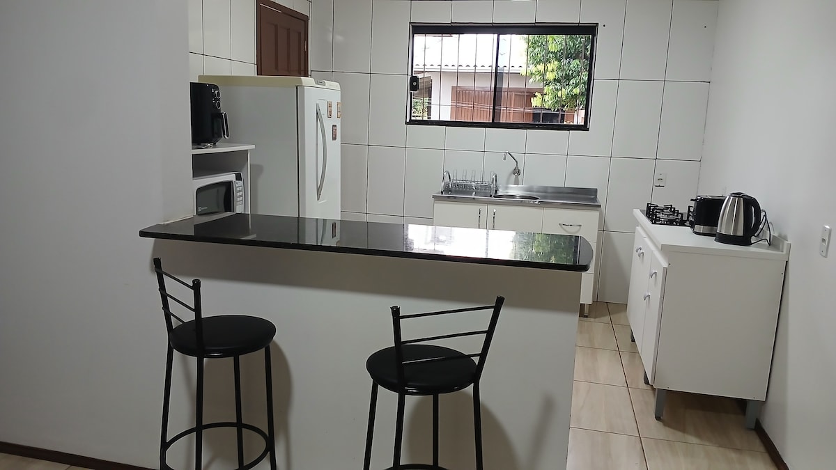 Aconchegante dan fungsional, Studio Essencial sangat cocok untuk masa inap Anda. Tempat ini memiliki dua tempat tidur (double dan single), kamar mandi pribadi, lemari besar, ruang kerja kompak, furnitur khusus, AC baru, minibar, TV, dan internet cepat. Kota ini menawarkan parkir tertutup dan opsi untuk memesan makanan dan minuman dasar. Baru dibuka, menggabungkan kenyamanan, kepraktisan, dan sentuhan pesona agar Anda merasa seperti di rumah sendiri!