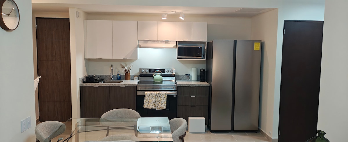 Apartemen yang sangat nyaman, dengan suasana santai dan tenang, dikelilingi oleh alam dan sentuhan keanggunan dan kenyamanan. Kami ingin Anda mengetahui keunggulan tempat kami yang indah 5 menit dari pantai dan di mana Anda dapat memiliki akses ke berbagai restoran dan aktivitas di garis pantai Salvadoran di jalan Surf City. Tentang tempat ini: Ini adalah apartemen ideal untuk pasangan atau keluarga kecil. Pesta tidak diizinkan, hanya jumlah tamu yang tercantum pada reservasi.