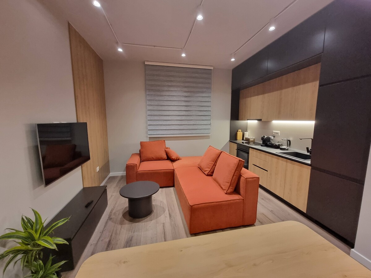 Apartemen studio pribadi bergaya dengan pintu masuk pribadi di menara yang baru dibuka berada di pusat Historical and Business District Tirana. Ruang yang nyaman dan mandiri dengan dapur kecil dan kamar mandi modern. Pemandangan luar biasa dari balkon Anda, sangat cocok untuk pasangan solo dan wisatawan yang mencari tempat yang nyaman. Tempat yang ideal untuk menikmati semua yang ditawarkan Tirana.