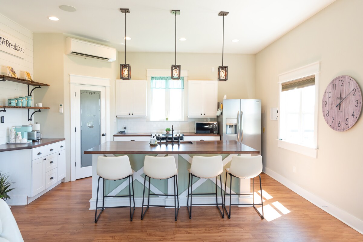 Dirancang oleh arsitek lokal, Cyrus Sutherland, rumah kami benar - benar unik. Dengan pekerjaan batu yang rumit di bagian luarnya, aksen kayu alami di bagian dalam, furnitur built - in khusus dan jendela dari lantai hingga langit - langit, Magruder pasti akan meninggalkan kesan abadi. Saat Anda berada di sini, Anda akan memiliki akses ke semua fasilitas mewah kami, termasuk ruang tamu berkonsep terbuka, dapur gourmet lengkap, Master suite , tempat tidur King size, dan patio luar ruangan pribadi dengan bak mandi air panas.