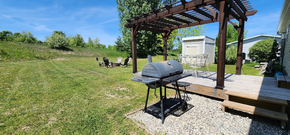 Rumah 3 bd/2 kamar mandi lengkap kami terletak di lingkungan yang tenang di dasar Leelanau County. Kami berjarak beberapa menit dari Traverse City, kilang anggur, kilang bir, beberapa pantai - termasuk Sand Dunes, Leland Fishtown, Empire, Suttons Bay, dan banyak jalur pendakian dan bersepeda. Setelah menikmati pemandangan Michigan Utara, kembalilah untuk beristirahat dan segarkan diri dalam privasi rumah Anda sendiri. Minum di dekat api unggun di halaman belakang, memanggang makanan, tidur larut malam, dan memandangi bintang. Ciptakan Kenangan Di Sini.