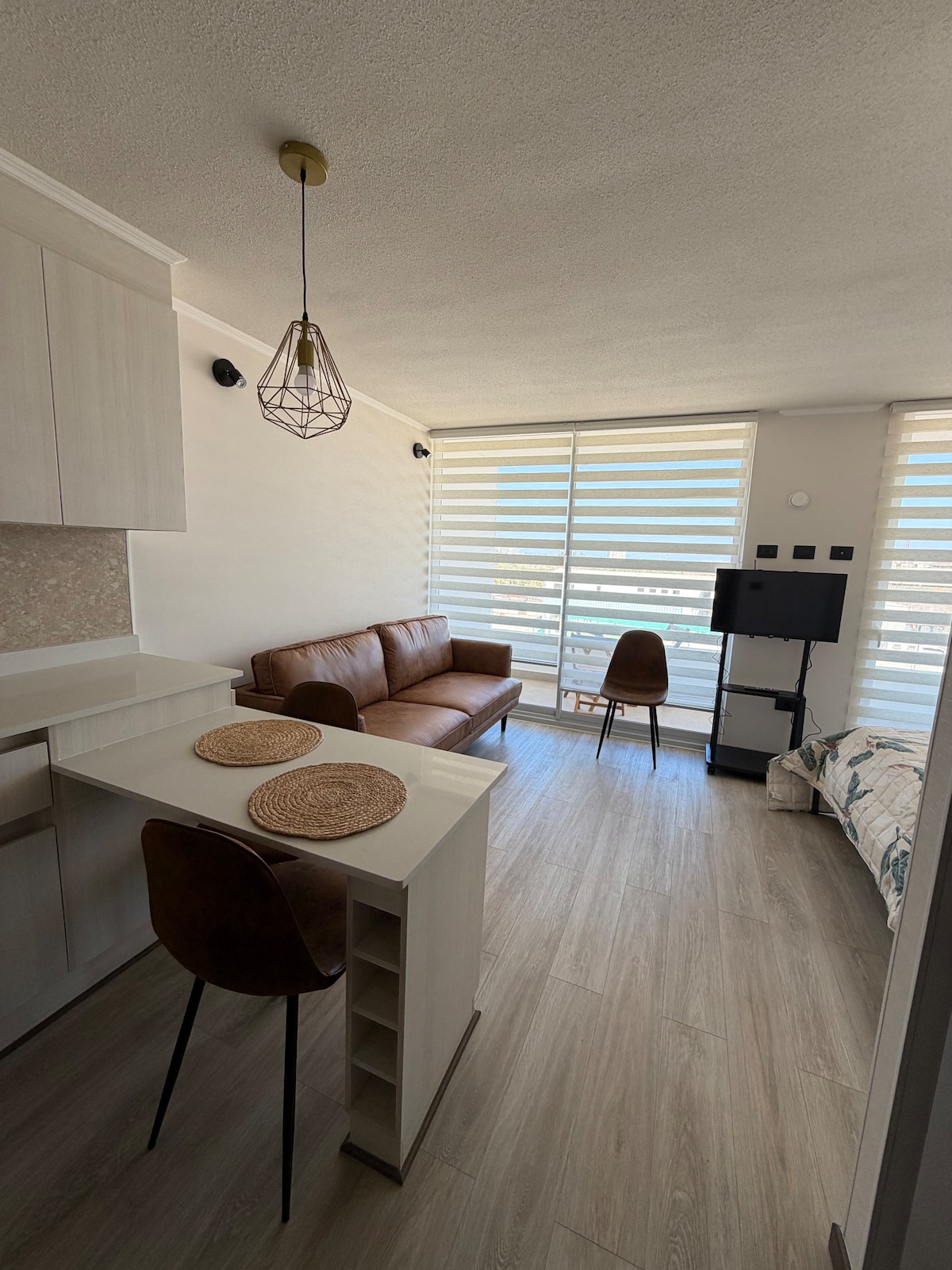 Bangunlah dengan pemandangan terbuka Coquimbo Bay, di mana laut dan cahaya menandai awal hari. Apartemen modern dan nyaman, ideal untuk beristirahat atau bekerja dengan tenang, dengan check-in mandiri, WiFi cepat, Smart TV dengan Netflix, dan parkir pribadi. Terletak di tengah, beberapa langkah dari pelabuhan, Plaza de Armas dan pantai, dengan koneksi yang sangat baik ke La Serena.