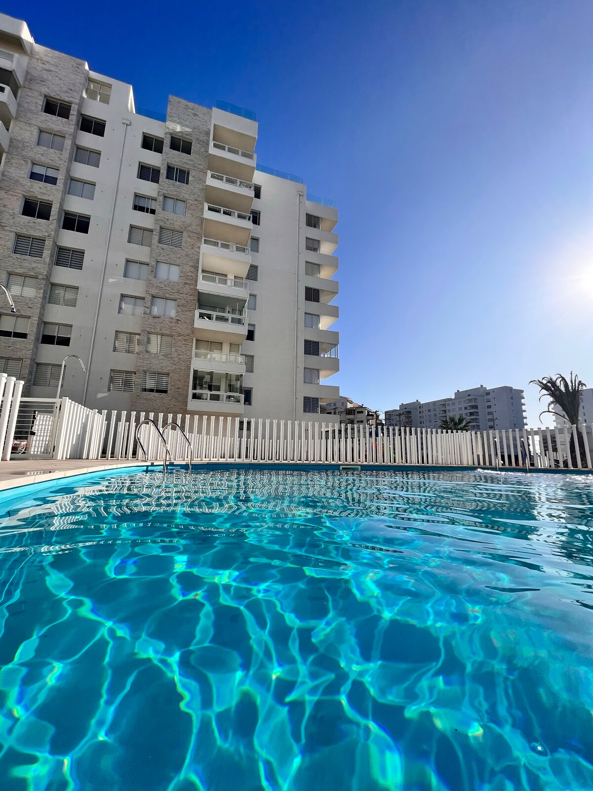 Bersantai di liburan yang unik dan damai ini. Apartemen yang indah dengan parkir, beberapa meter dari pantai. Dapur Amerika, ruang tamu, 2 kamar tidur, 2 kamar mandi, kolam renang . Terletak 1km dari La Serena Lighthouse, dekat dengan restoran, kafe dan sekolah selancar. Sektor ini ideal untuk berjalan - jalan di tepi perairan saat matahari terbenam. Terletak di lantai lima, apartemen saya akan memberi Anda perlindungan dan kenyamanan yang Anda butuhkan untuk bersantai dan menikmati masa inap Anda di kota.