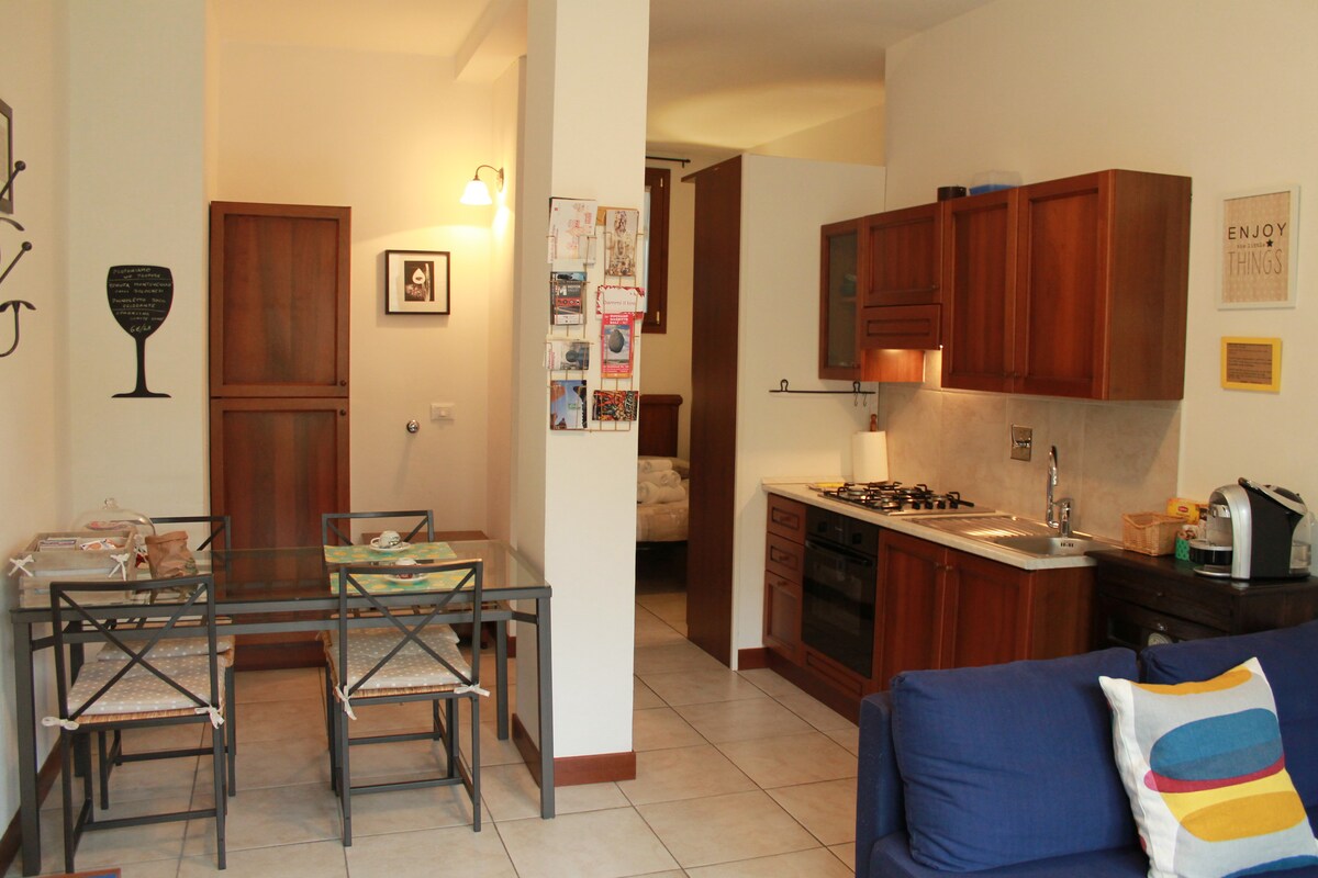 Nice apartment (35mq) in a very naturalistic area close to city center (15minutes walking, two bus lines to downtown available in the nearby). Very quiet and charming with a wonderful panoramic view, consisting of living area with fully equipped kitchen, dining table and a comfortable sofa, bedroom, bathroom with box shower and window. Breakfast included. Autonomous heating. Autonomous entrance. Free Private parking. Tourist tax 2 € / day / guest collected at check-in