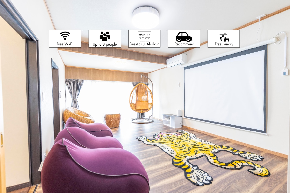 ◾️ 華やかな花魁部屋とシアタールームで非日常を。 ◾️無料サービス 送迎、お風呂、サウナの特典あり ※詳細は下記をご確認ください 洗濯機・乾燥機無料(洗剤付き) ◾️立地 車での観光に最適(馬籠宿まで約20分) 中津川駅より車で約10分/中津川ICより約5分 ※最寄りのバス停「松源寺」まで徒歩約1分 ◾️アメニティ バスタオル・フェイスタオル・バスマット・歯ブラシ・歯磨き粉・シャンプー・コンディショナー・ボディソープ・手洗い石鹸・食器洗剤・洗濯洗剤・柔軟剤シート・ティッシュ・リネン ◾️設備 冷蔵庫・冷凍庫・電子レンジ・炊飯器・2口コンロ・グリル・ウォーターサーバー・洗濯機・乾燥機・プロジェクター・スマートTV・エアコン・ガスファンヒーター(冬季)・こたつ(冬季) ◾️備品 ドライヤー・食器・包丁・まな板・フライパン・鍋・鍋蓋・カトラリーセット・しゃもじ・菜箸・割り箸・オタマ・木ベラ・缶切り・栓抜き・コルク抜き・キッチンペーパー・ドンブリ・平皿・コップ・グラス・ハンガー ◾️寝具 セミダブルベッド1台・布団6セット(マットレス)