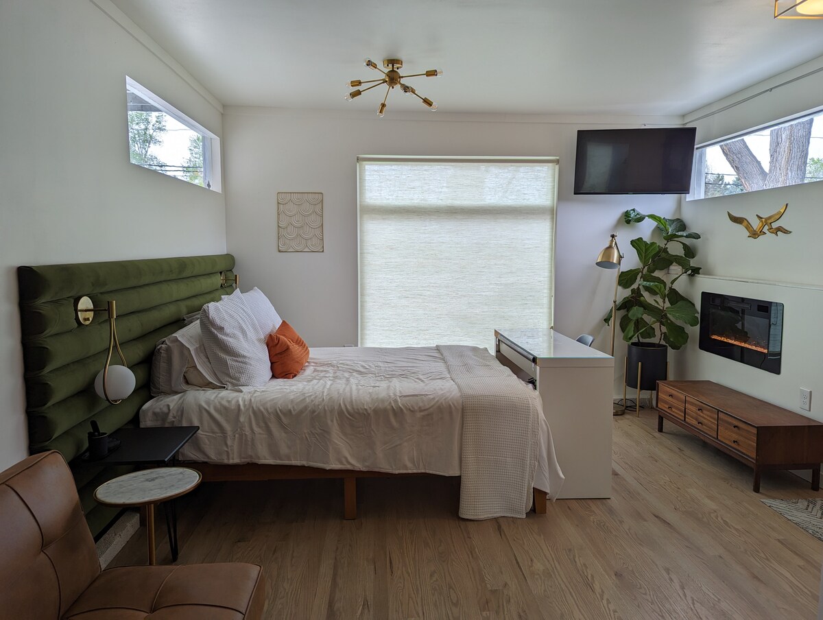 Garden-level studio near Wash Park, Gaylord St, Pearl St, and DU. You’ll love its urban chic decor with exposed brick and beams. It can easily accommodate a couple, DU parents visiting the kids, or solo travelers. Private entry w/ kitchenette, 3/4 bath, 2 bikes, king bed, & queen sofa bed. Explore historic neighborhood shops and restaurants, or stay in for movie night on the large flatscreen with AppleTV. Free assistance available for booking a car, tours, and restaurants. All are welcome here!