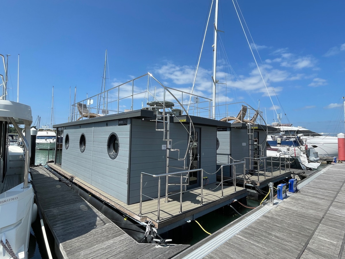 The Waterlodge di Yarmouth Harbour, menawarkan pengalaman liburan yang unik. Apartemen terapung dirancang untuk menyediakan tempat peristirahatan yang nyaman dan damai dengan akses mudah ke kota Yarmouth. Pondok ini modern dan bergaya, setiap apartemen memiliki area tamu yang nyaman dengan sofa, TV, dan meja makan, dapur lengkap dengan kompor, mesin cuci piring, dan kulkas. Juga balkon dengan tempat duduk luar ruangan, teras atap berperabot dengan pemandangan Solent.