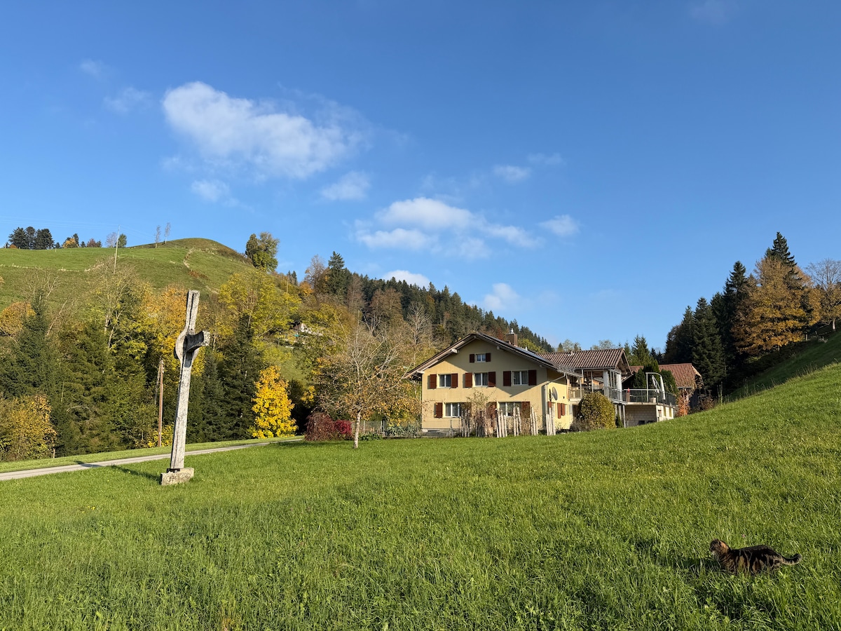 Selamat datang di Wolhusen, 20 menit naik mobil atau kereta api di luar Lucerne! Studio tamu baru saya yang nyaman di rumah kami berlokasi di lokasi yang tenang dan indah, terhubung dengan sangat baik ke transportasi umum. BARU MULAI 26 JANUARI: KERANJANG SARAPAN TERMASUK dalam harga kamar! Studio saya sangat ideal untuk tamu aktif yang ingin menjelajahi wilayah Lucerne / Swiss Tengah / Swiss, yang sedang lewat atau berada di wilayah ini karena alasan profesional.