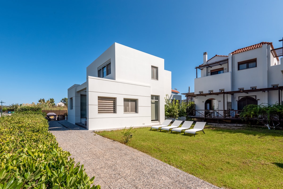 This beautiful and comfortable villa offers great views of the Aegean Sea and it is just a stone's throw away from the beach. Spacious, bright, fully air-conditioned and fully equipped this stylish house offers everything you need during your holiday.