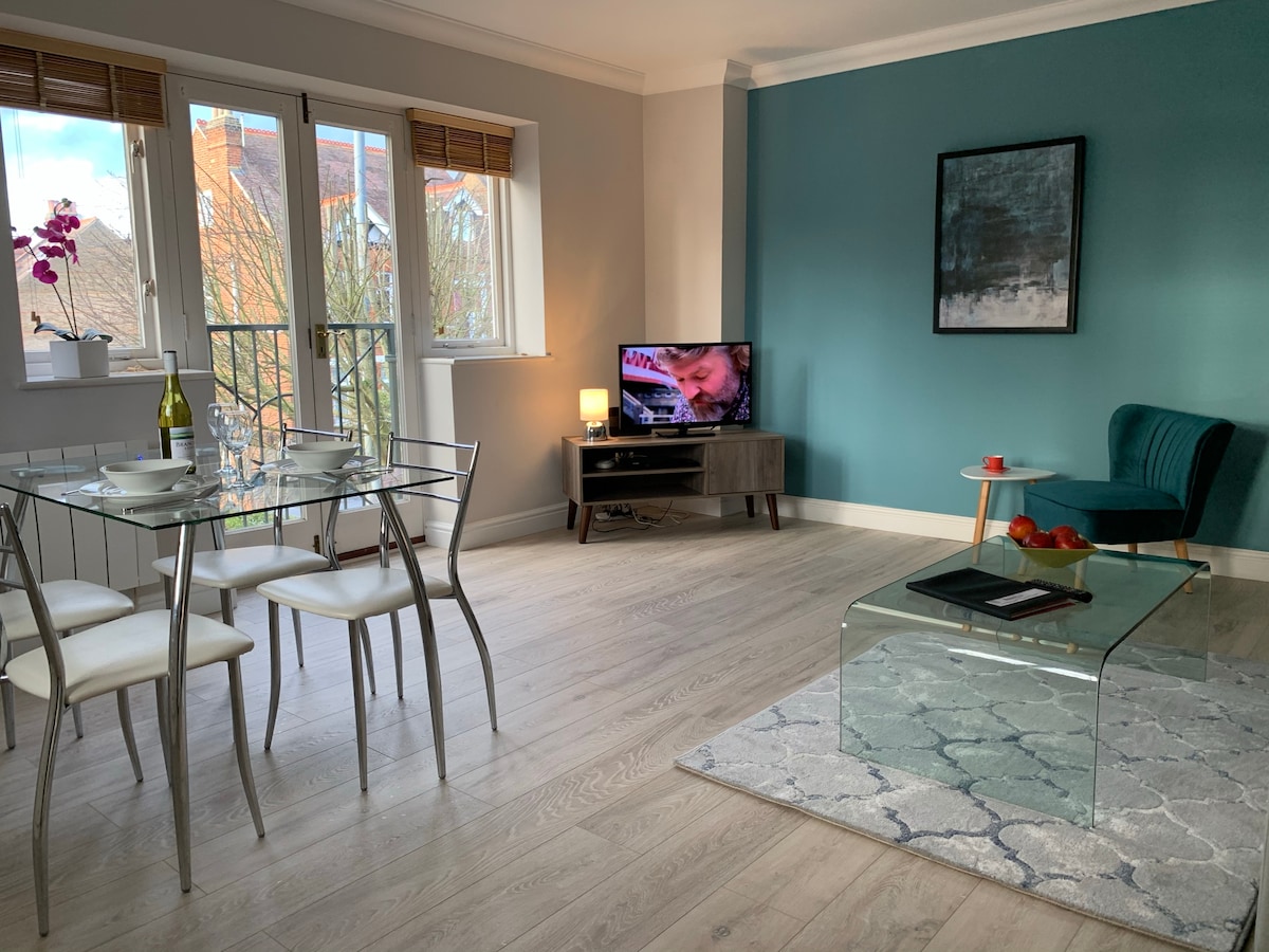 Besar, Artistik, Unik 2 Kamar Tidur 2-6 tamu (Kamar untuk 12 tamu di lokasi - kirim pesan kepada kami) Sangat cocok untuk akhir pekan, masa inap jangka panjang & kerja jarak jauh. Dapur lengkap, mesin cuci/pengering, pengisian EV, parkir gratis, ramah anjing -2 maks. 25+ restoran. Toko yang menyenangkan: Barang antik, pakaian, seni, hadiah, bunga & selimut. Berjalanlah ke Henry VIII Hampton Court Palace & Flower Show, Thames riverboats, Bushy Park's Parkruns. Berjalan kaki ke kereta & bus London ke Twickenham & Richmond (rumah Ted Lasso & LondonAtelierByproducts - hadiah & mode wanita!
