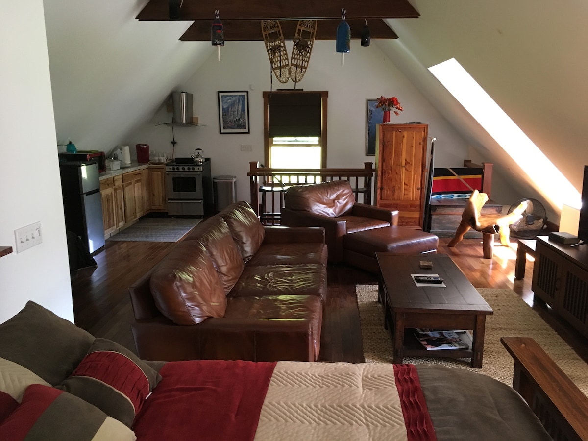 Nice studio suite. Charming space features LR with a full bed and twin , perfect for 1-3 travelers. AC, WiFi, fireplace, guests can relax and unwind after a day exploring or enjoying a Bills game! Beautiful large bathroom offers walk-in shower. Private entrance and off-street parking. Steps away from Green Lake, a quick walk into the village, a short drive to Chestnut Ridge, Eternal Flame, and so much more.