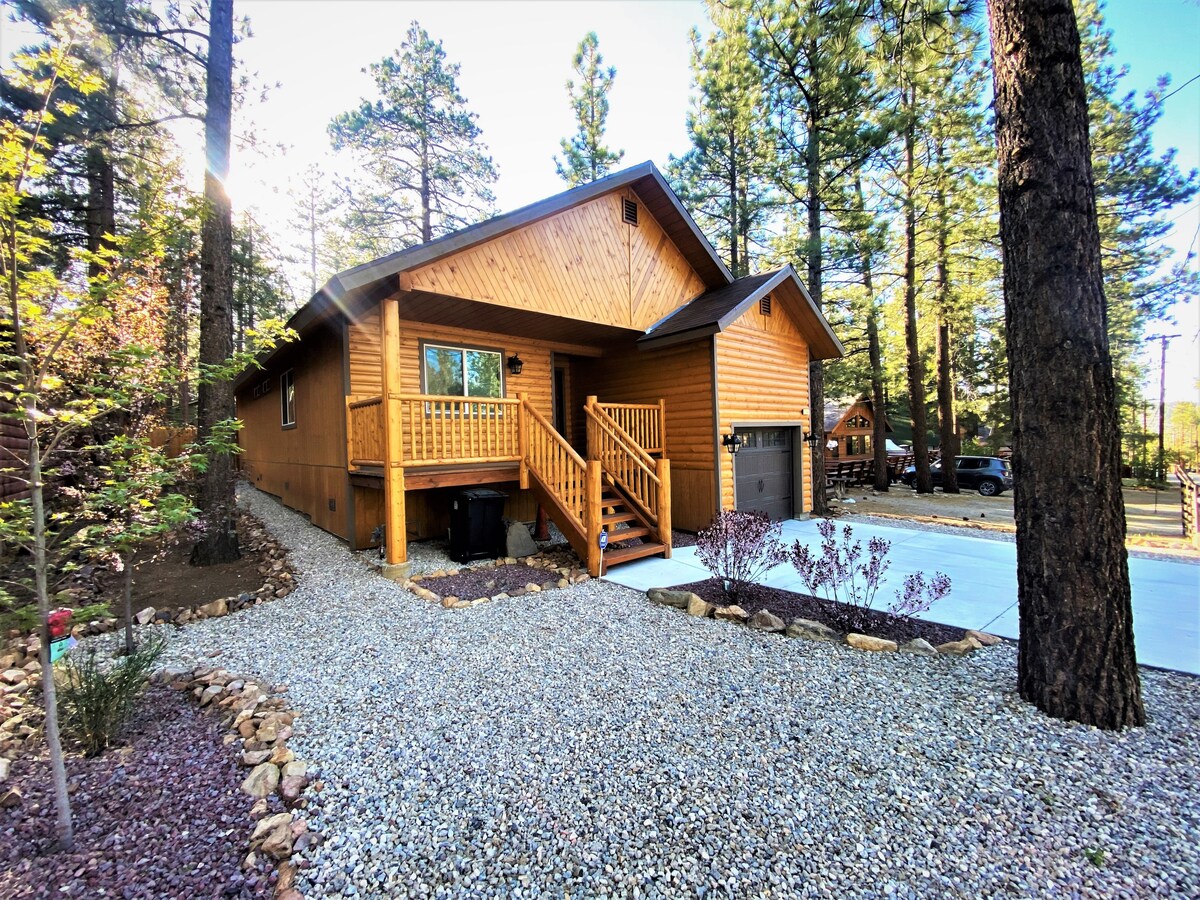 Desain interior profesional dengan fitur Alexa kabin cerdas! Bersantai dan bersantai di tempat peristirahatan pegunungan yang tenang, nyaman, dan menawan ini. Masak atau panggang di dapur baru kami! Nikmati ruang terbuka pribadi yang luas, lengkap dengan perapian... panggang beberapa marshmallow jika Anda mau! Musim Dingin, Musim Semi, Musim Panas, atau Musim Gugur - Pine Knot Cabin akan berfungsi sebagai tempat liburan yang sempurna di pegunungan Big Bear yang damai. ig: @pineknot.cabin