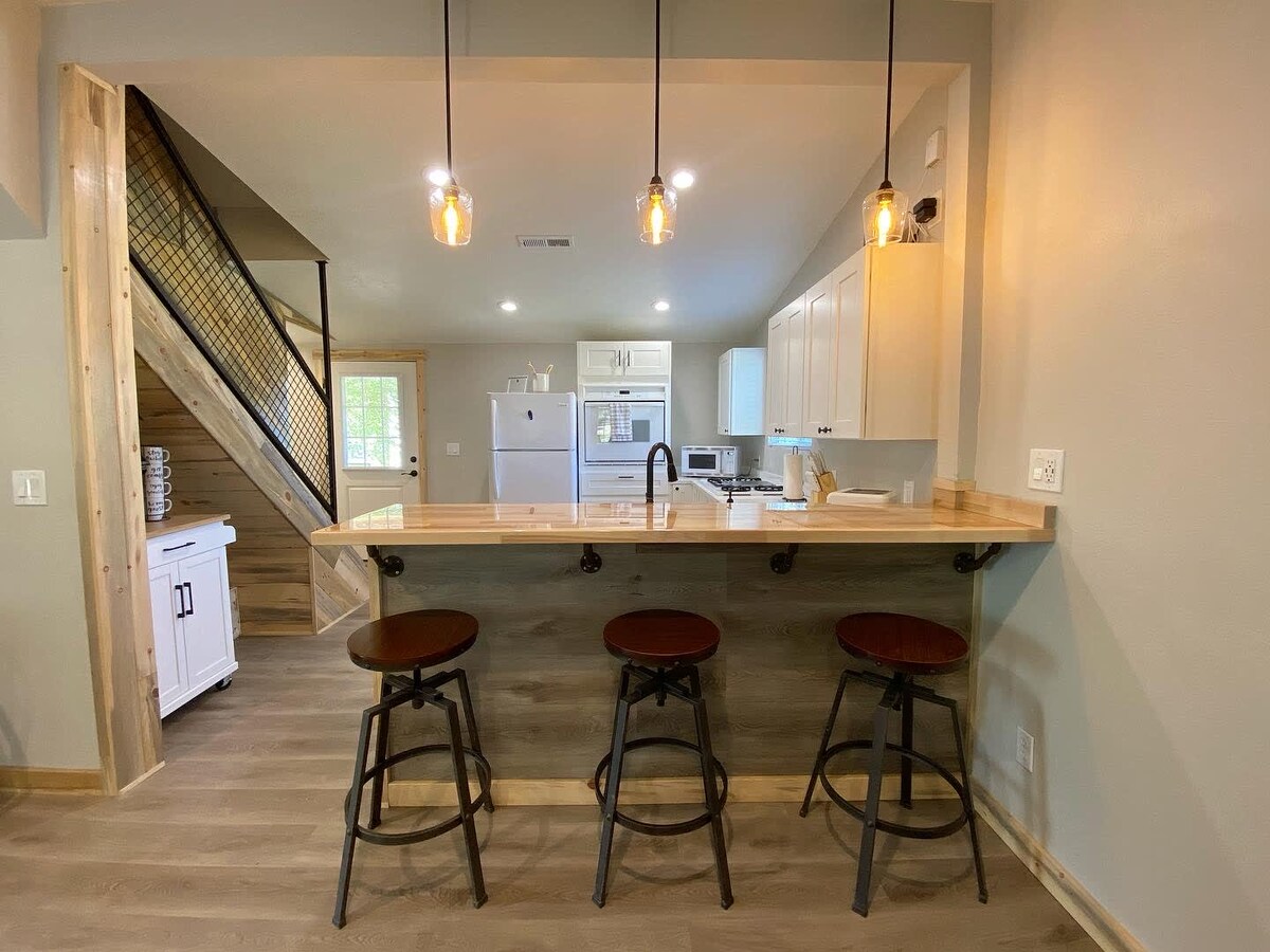 Tingkatkan kehidupan Anda di rumah pegunungan kami yang menakjubkan, suite utama King dengan kamar mandi dan bar kopi, termasuk semua fasilitas yang dibutuhkan untuk rumah yang nyaman saat jauh dari rumah menginap liburan. Anda akan merasakan dapur keluarga yang siap untuk makanan prerparing. Petunjuk akses mudah, dapat diakses sepanjang tahun. Duduklah di kabin berderet kayu yang akrab ini di dekat perapian yang hangat dan lihat jalur ski di seberang jalan, atau terjun ke jacuzzi panas di bawah langit yang diterangi bintang yang megah. Semua ini dan banyak lagi, terletak di antara pohon - pohon pinus.