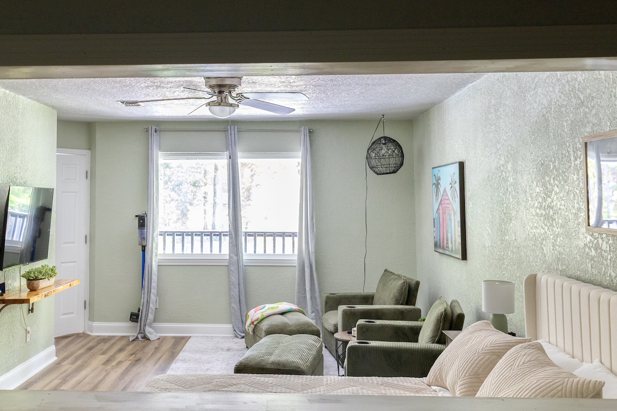 Selamat datang di Paradise dengan KOLAM RENANG. Cocok untuk anak - anak. Karena kami telah menyewakan rumah kami, ada dua hal utama yang perlu diperhatikan: 1) kami tinggal di lantai atas dan Anda akan mendengar langkah kaki anak - anak kami. (7 -8 pagi). Tidak ada keluhan tentang suara. 2) kolam renang kami tidak dipanaskan. Nikmati akses pantai sisi suara TEPAT di seberang jalan! Matahari terbenam terbaik di pantai! Teluk Meksiko berjarak 5 blok. Lanai pribadi dengan akses pemanggang dan kolam renang. Masuklah ke bawah tangga ke suite mandi 2 kamar tidur 1 pribadi Anda yang unik. Keypad di pintu.