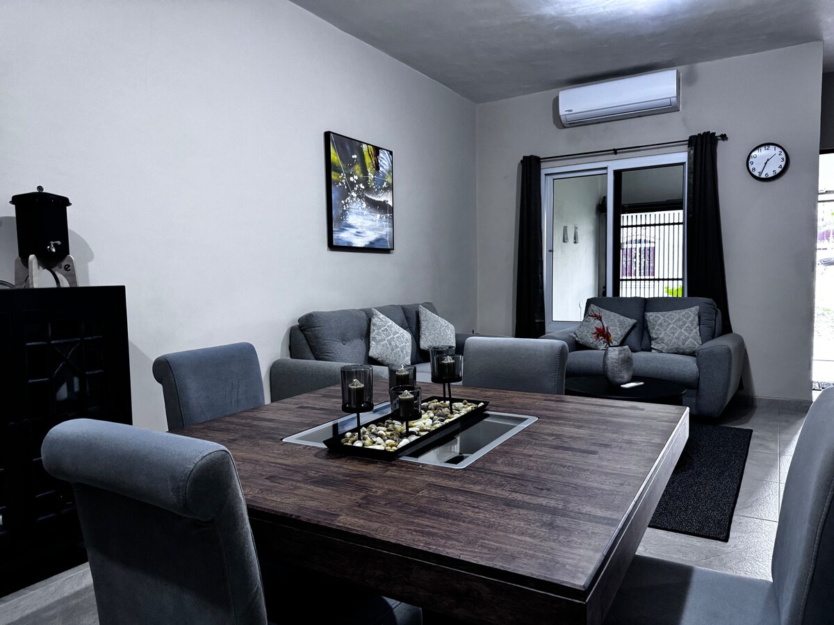 Bangkitkan semangat Anda di tepi laut. Terletak di El Paredon, Guatemala. Surga 2 tempat tidur dan 2 kamar mandi pribadi ini menyatukan kenyamanan modern dan pesona pedesaan, berjalan kaki singkat dari pantai. Rangkul kepraktisan dengan dapur yang lengkap, pancuran air panas, sofa tidur, & agua vida di keran. Benamkan diri Anda dalam ketenangan di tepi kolam renang atau teras, nikmati angin sore dengan AC sebagai pendamping opsional. Hunian unik kami menawarkan ruang untuk ketenangan, menemukan ketenangan di dekat ombak yang menenangkan.