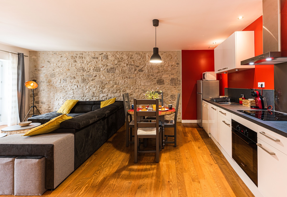 Di rumah yang penuh dengan sejarah, dekat dengan pusat kota Nérac, apartemen yang diusulkan direnovasi sepenuhnya pada tahun 2018. Terdiri dari ruang tamu, dapur lengkap, dua kamar tidur, kamar mandi dan toilet terpisah, unit di lantai 1 ini terang. Tempat ini memiliki pintu masuk terpisah. Selama menginap, Anda bisa menikmati taman dan pepohonan berusia seabad, serta berbagai teras teduh. Selamat datang di Nérac!