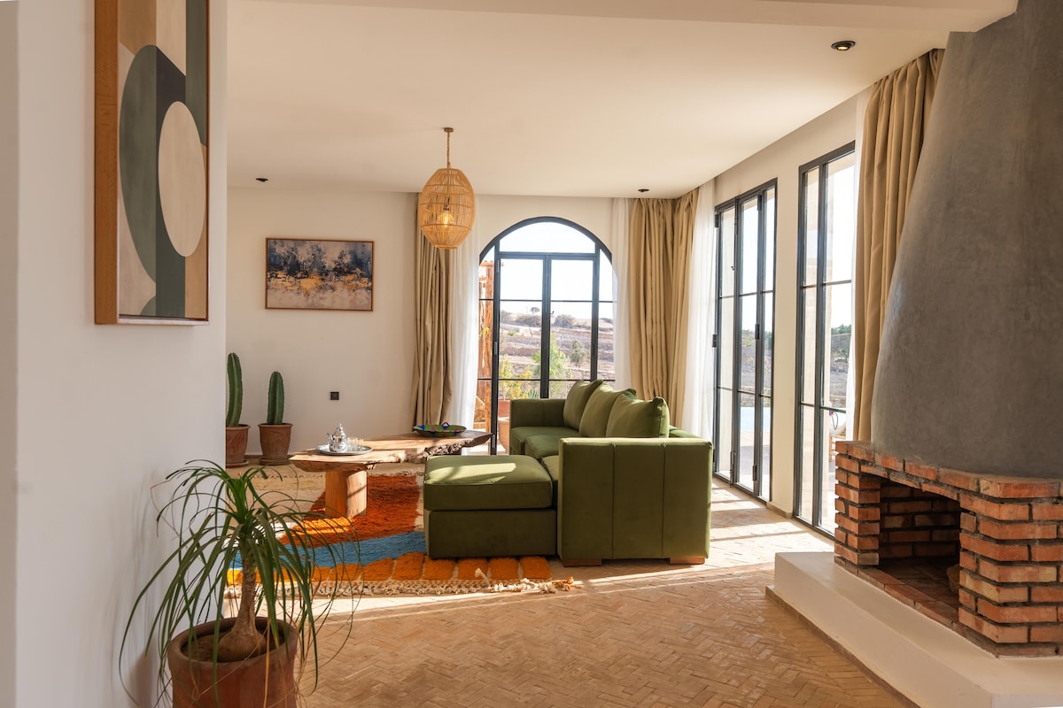Selamat datang di vila beldi kami yang nyaman, hanya beberapa menit dari Essaouira Nikmati suasana tenang di pedesaan yang dikelilingi oleh tanaman hijau, ideal untuk bersantai sebagai pasangan atau keluarga. Villa ini memiliki 2 kamar tidur luas, ruang tamu yang cerah, dapur lengkap, dan kolam renang pribadi. Setiap ruang dirancang untuk menawarkan kesehatan dan privasi. Saya menantikan kedatangan Anda secara pribadi dan membantu Anda menemukan kenyamanan dan kepuasan Anda adalah prioritas saya