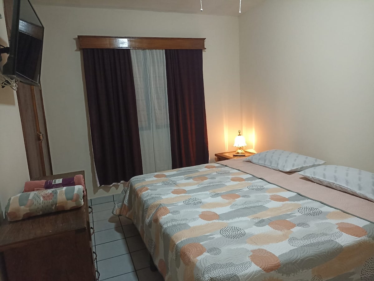 Ini adalah tempat unik untuk keluarga atau rombongan kecil, ruang tamu dan ruang makannya ideal untuk hidup berdampingan. Tempat ini memiliki layanan luar biasa yang menghasilkan kenyamanan untuk kebutuhan Anda: * Sanitasi ruangan dan permukaan *Dapur lengkap dengan air terfilter. *TV dan Wi - Fi. * Perapian kayu bakar dan pemanas listrik. * Kamar mandi lengkap. * Patio dalam ruangan *Teras dan barbekyu dengan peralatan dasar (ketersediaan di bawah reservasi).