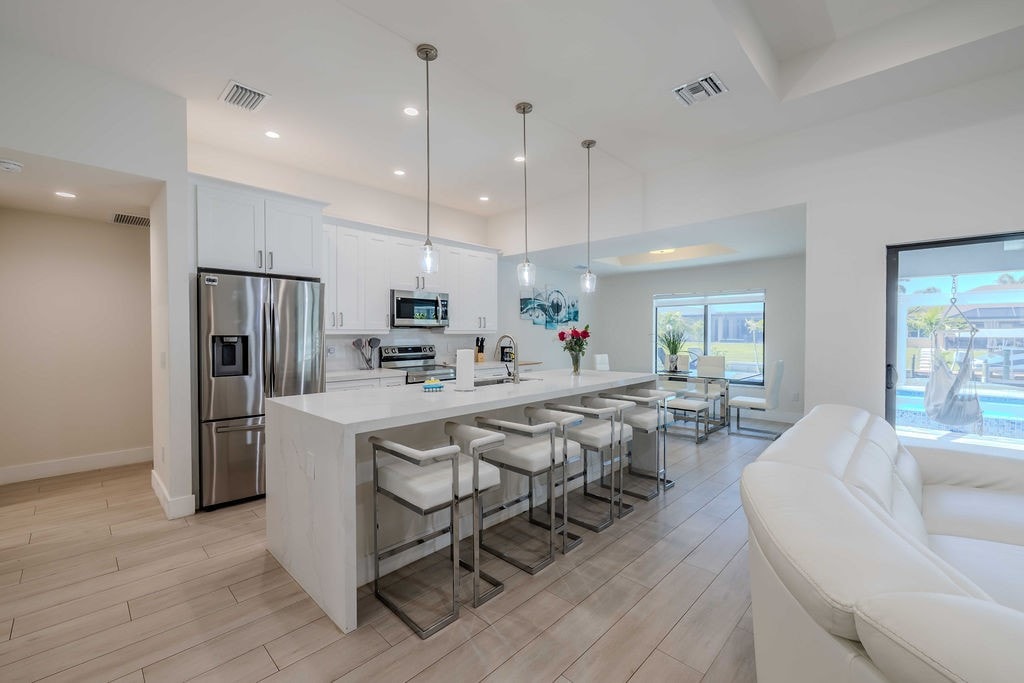 Selamat datang di rumah liburan impian Anda di Florida yang cerah! Tempat liburan mewah ini menawarkan vila tepi laut Cape Coral 4BR/3BA yang luas untuk 8 orang dengan kolam renang pribadi, bak mandi air panas, dapur chef, parkir gratis, kebijakan ramah hewan peliharaan, dan Wi-Fi yang andal - cocok untuk keluarga, pasangan, pelawat bisnis, dan pekerja jarak jauh. Casa del Lago adalah tempat liburan tepi laut mewah yang dirancang untuk mereka yang mencari relaksasi dan memanjakan diri.