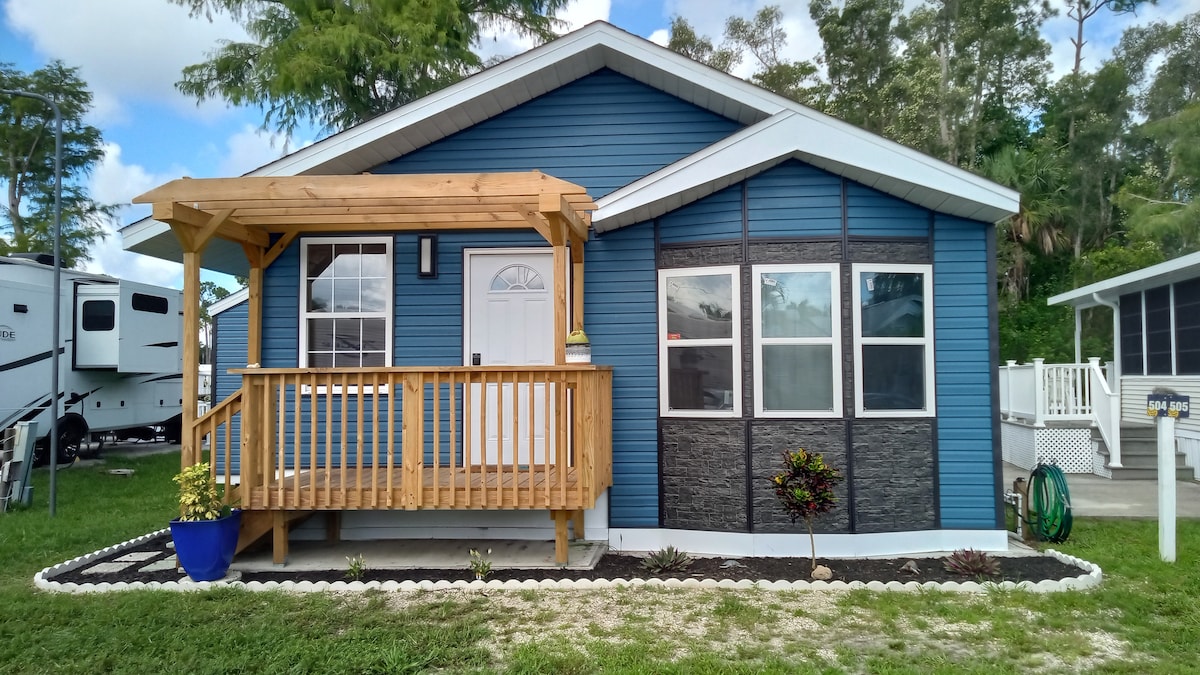 Menginaplah di Zen Container Tiny Home kami di tepi Fort Myers dan Estero — beberapa menit dari pusat perbelanjaan, pasar swalayan, FGCU, gerai, restoran, taman negara, kayak, Hertz Arena, dan 15-20 menit ke pantai! Dekorasi wabi-sabi modern, peralatan baru, shower hujan, dan ruang tamu yang nyaman dengan TV 75”. Halaman berumput berpagar penuh dengan pohon murbei, lubang api, dan ruang yang luas untuk hewan peliharaan Anda bermain. Jalan yang tenang dan aman, namun dekat dengan segalanya. Sempurna untuk liburan yang menenangkan