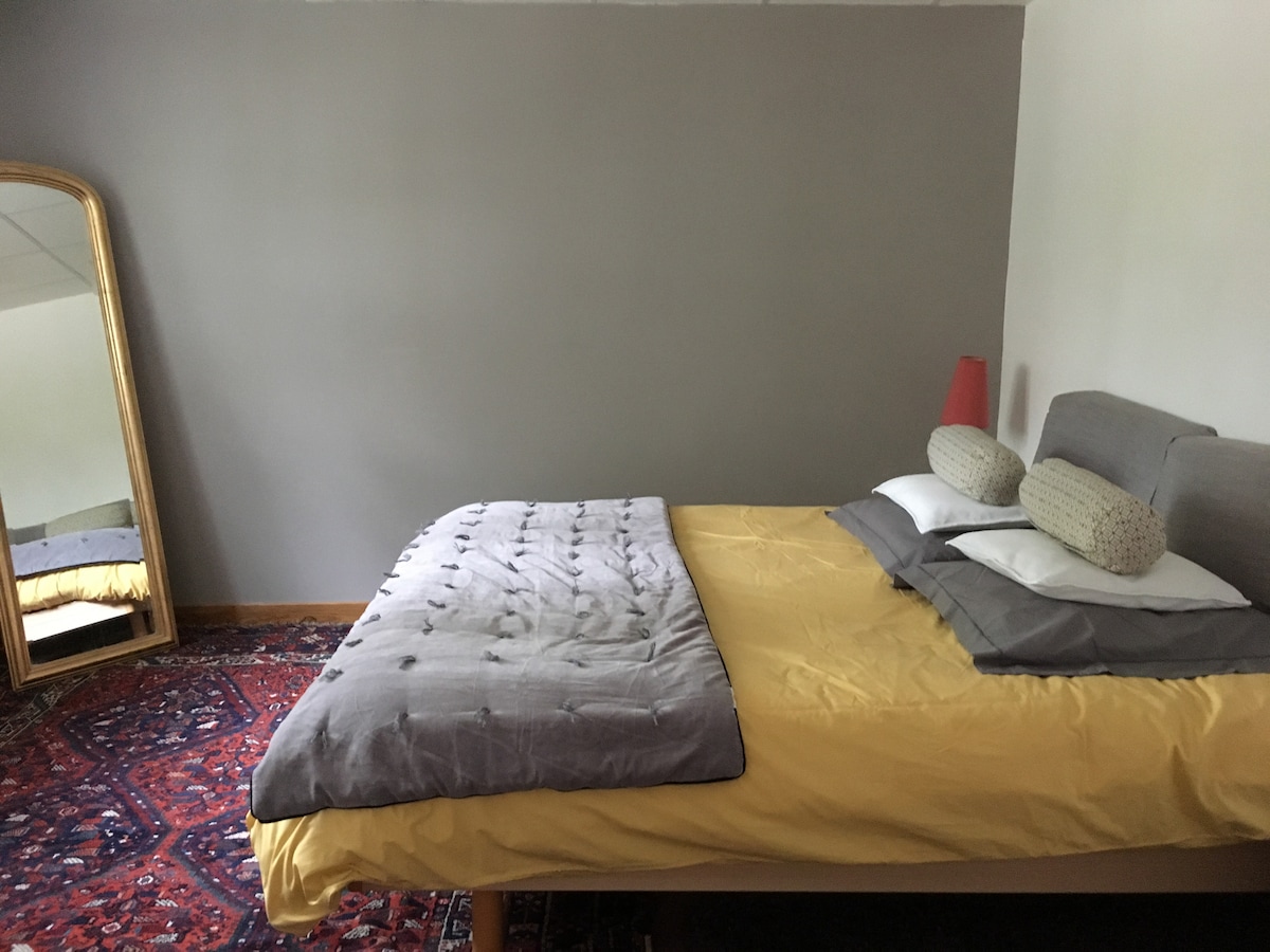 ✨ Fasilitas: Kompor/oven, kulkas, combi grill/microwave. Piring dan peralatan dapur. Kamar mandi pribadi (pancuran 70 x 70 cm, wastafel, toilet). Tempat tidur double berukuran 160 x 190 cm. Meja dan kursi. Dilarang merokok. Akomodasi yang berdekatan dengan rumah saya, tenang dan diperlukan wisatawan yang bijaksana. Taman tanpa pagar seluas 5000 m2. Check-in mandiri dimungkinkan atau presentasi akomodasi. 📍 Akses independen dengan tangga luar ruangan.