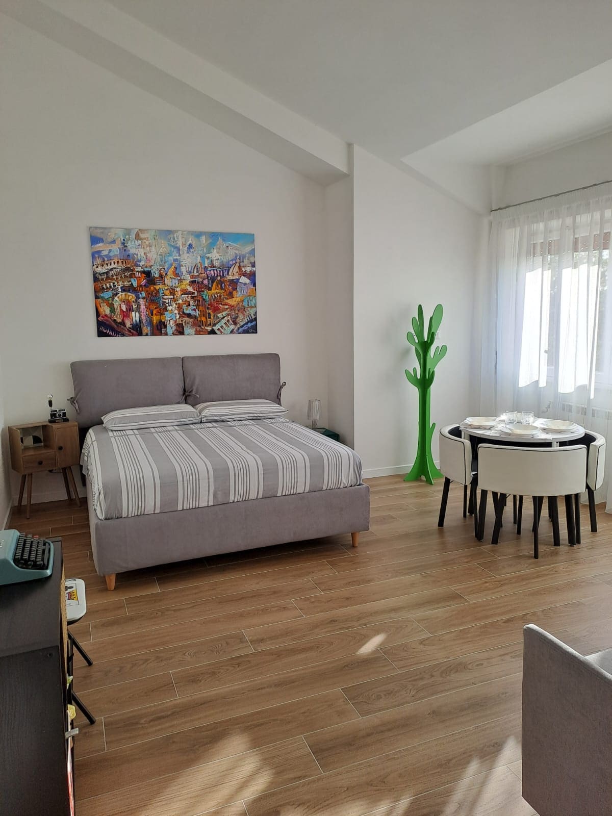 Penthouse dengan kamar tidur besar, dapur kecil, dan teras yang sangat besar yang menawarkan matahari terbenam yang indah di EUR. Berjalan kaki 3 menit dari halte metro Laurentina yang memungkinkan Anda mencapai Colosseum dan Circus Massimo dalam 10 menit, 10 menit berjalan kaki dari taman eur dan pusat konferensi, 20 menit berkendara dari sungai dan 15 menit dari Ciampino dengan kemungkinan bus langsung ke rumah (720). Area yang tenang dengan segala macam fasilitas dan parkir yang mudah. CIR: 25426