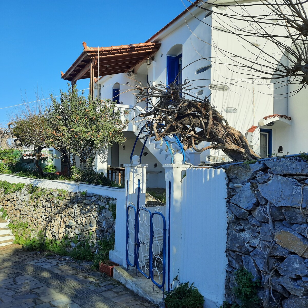 Sebuah puri tradisional yang berasal dari awal abad ke -19 seluas 150 meter persegi, direnovasi sepenuhnya,terdiri dari 3 kamar tidur, ruang duduk dengan dapur dan 2 kamar mandi Terletak di kawasan utara pulau Ikaria di desa Kampos - Oinoi -5 kms yang jauh dari pelabuhan Evdilos, 300 meter dari pantai Kampos dan 500 meter dari pusat desa. Terletak di kebun hijau 2 ankres ,penuh zaitun,lemon,oranye pohon buah lainnya Lokasi ini menawarkan pemandangan laut & gunung yang indah