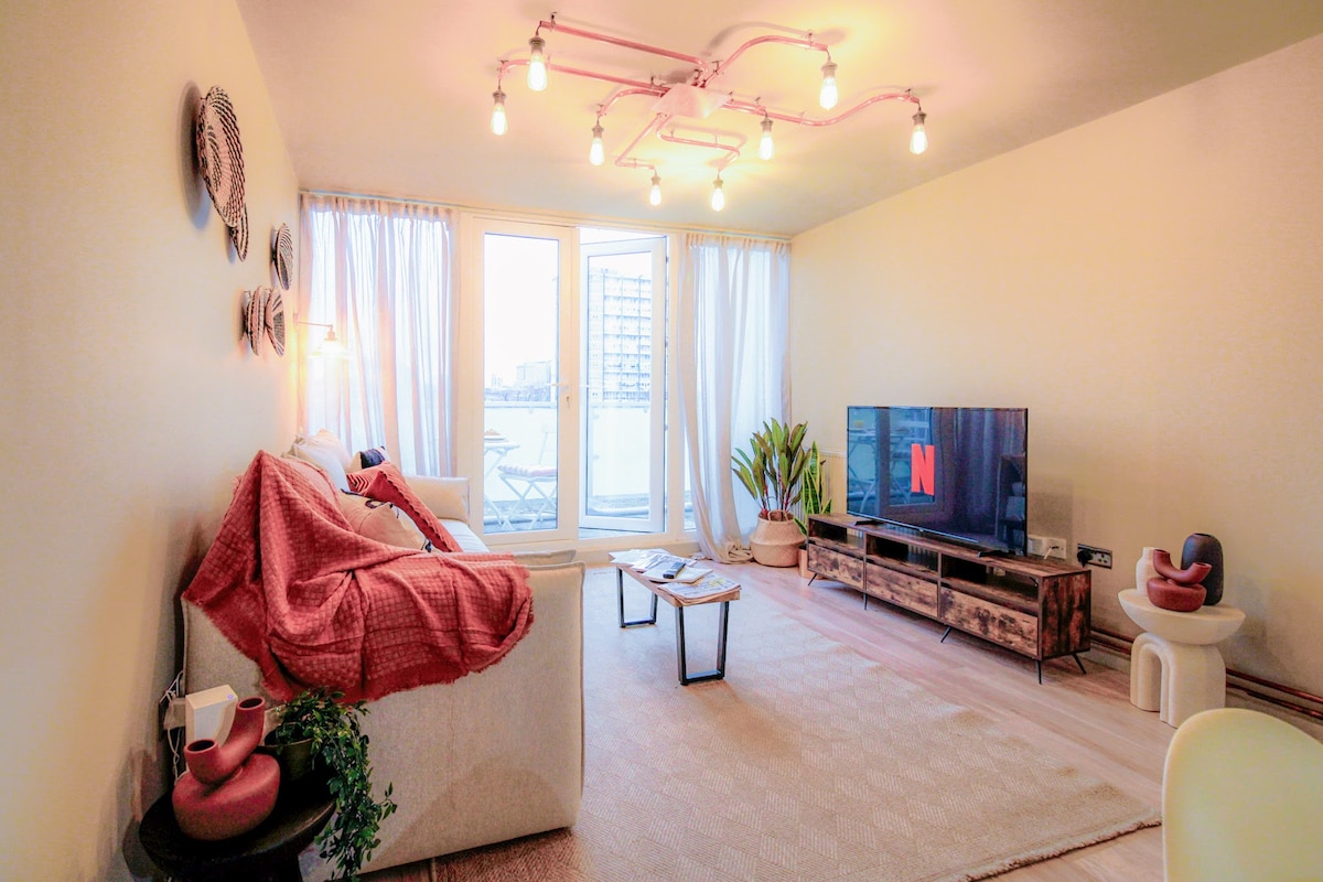 Flat Cerah dengan Balkon, Dekat O2, Canary Wharf & LCY