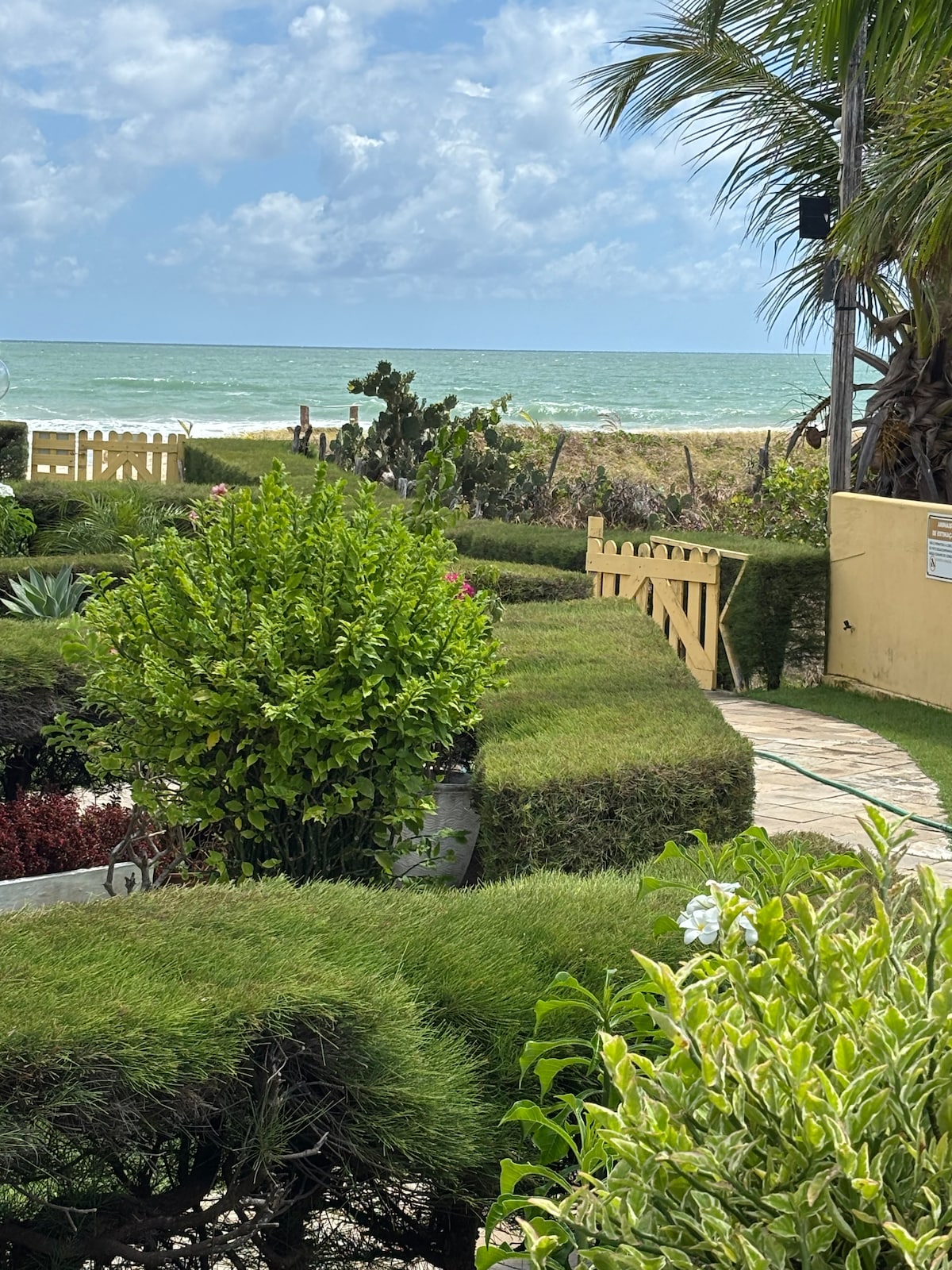 Apartamento no térreo com vista para o mar na praia de Graçandu. São 2 quartos climatizados sendo 1 suíte, 1 banheiro social, 1 sala com TV e sofá-cama, cozinha completa e uma ventilada varanda em frente a piscina e com acesso direto ao jardim, ideal para armar uma rede e curtir a vista. O apt fica no Golden Dunes, condomínio fechado com segurança e portaria 24 h, estacionamento, churrasqueira e a maior piscina do litoral norte, a 100 metros da praia e a 5 minutos da Lagoa de Pitangui. @raul2n