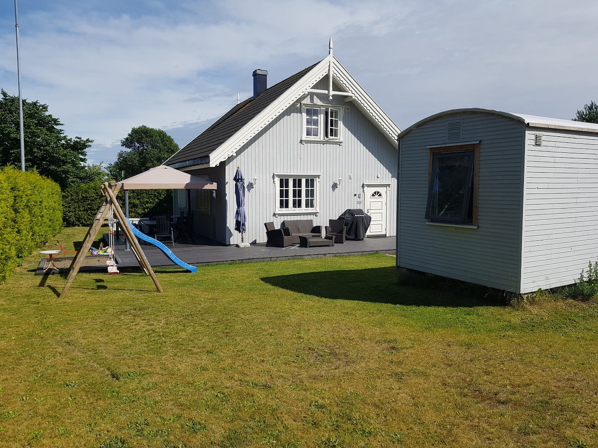 2 etasjers sommerbolig med anneks til leie med all nødvendig utstyr for at 1-3 familier kan feriere uten å må medbringe masse utstyr. Masse leker både ute og inne. Huset ligger nær sjøen med kort vei å gå til strand (500 m) og Marina (300m). Dessverre har ikke huset sjøutsikt. Ved marinaen finner dere bakeriutsalg, restaurant Havhesten og iskiosk. Nær huset ligger også Gamle Ormelet som har utstillinger og konserter. Buss 02 til Tønsberg/Horten og Hvasser stopper rett på utsiden av huset.