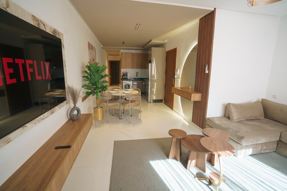 Bienvenue dans notre appartement moderne et confortable à Tanger, idéalement situé pour profiter pleinement de la CAN 2025! Que vous veniez assister aux matchs ou découvrir la beauté de la ville, ce logement est parfait pour un séjour agréable à seulement quelques minutes du stade, des plages et du Tanger City Mall. Décoré avec soin dans un style moderne et accueillant, notre appartement offre tout le confort nécessaire pour se détendre après une journée de sport ou d'exploration de la ville.
