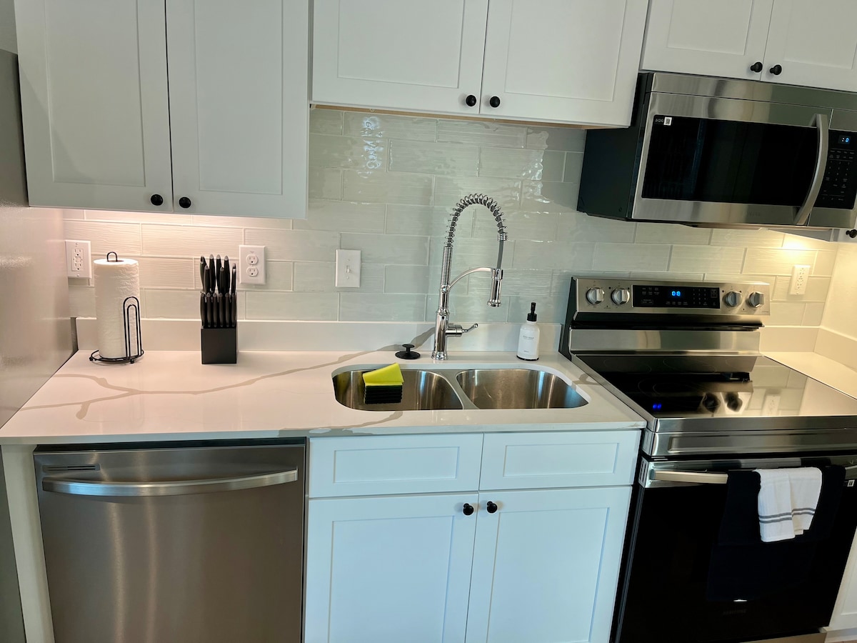 Dapatkan yang terbaik dari kehidupan perkotaan di townhouse mewah yang terselip ini! Nikmati segalanya mulai dari memasak hati Anda di dapur mewah yang lengkap, hingga bersantai di depan TV 86”( YouTube TV, Netflix, Disney+), atau cukup nikmati koktail di teras belakang! Seprai mewah (seprai 1200 benang, handuk RH, kasur menakjubkan), kamar mandi lengkap, lemari pakaian, dll. Jika perjalanan bisnis adalah permainan Anda, nikmati WiFi berkecepatan tinggi dan meja penuh untuk ruang kerja Anda!