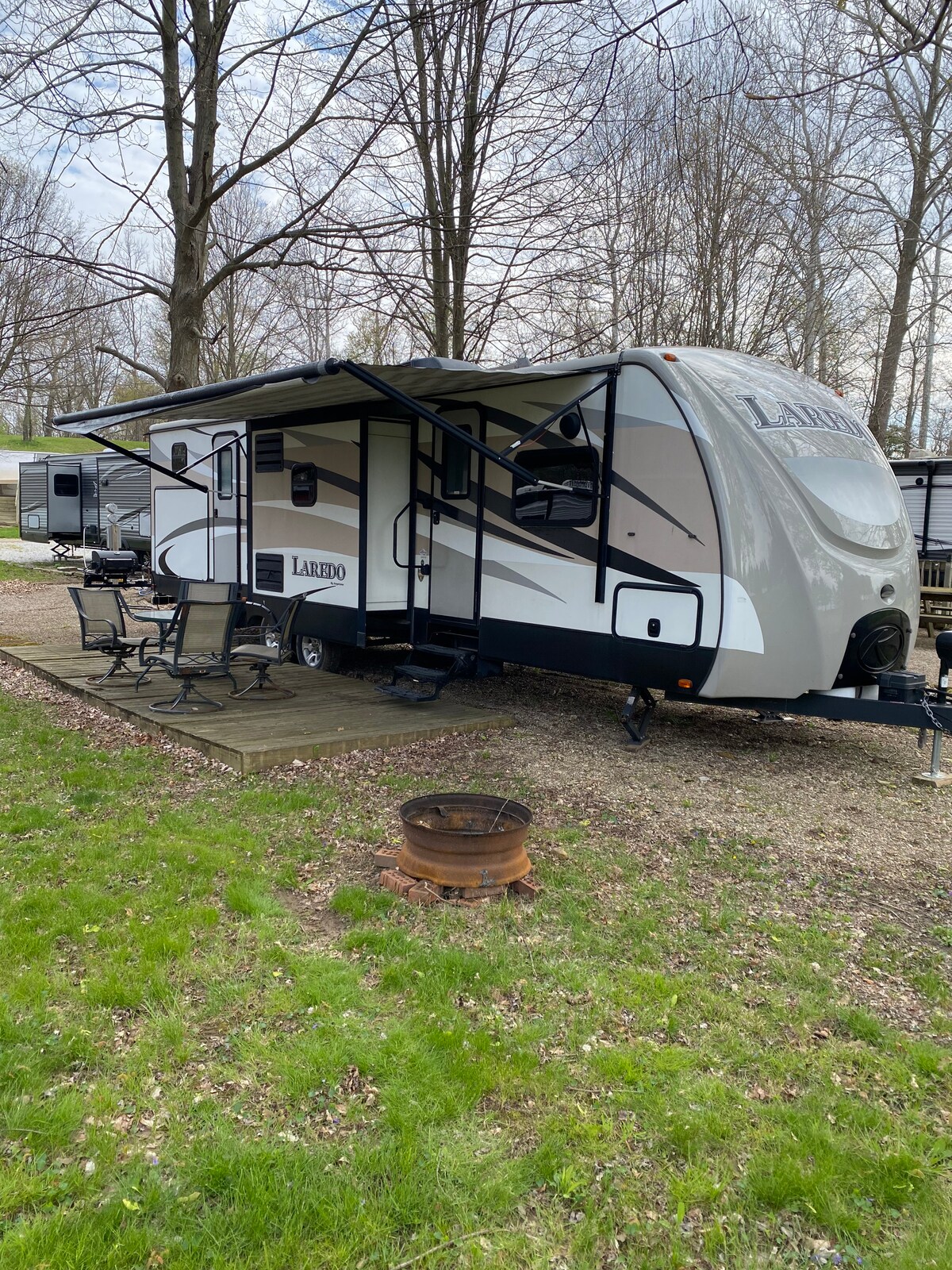 Menjauhlah dari semuanya saat Anda menginap di bawah bintang - bintang. Kolam renang terbuka dari Memorial hingga hari kerja. Foto - fotonya adalah foto umum Perkemahan. Kami menempatkan trailer Perjalanan di situs yang tidak disewakan oleh kami. Anda dapat meminta situs tertentu dengan mengunjungi situs web kami yang riak di perkemahan. Kami tidak mengenakan biaya kebersihan, saya meminta semua tamu untuk membersihkannya untuk tamu berikutnya. Harap perhatikan, tidak ada peralatan memasak atau seprai di unit RV. Bila Anda membutuhkan handuk atau selimut harap berhenti di kantor depan.