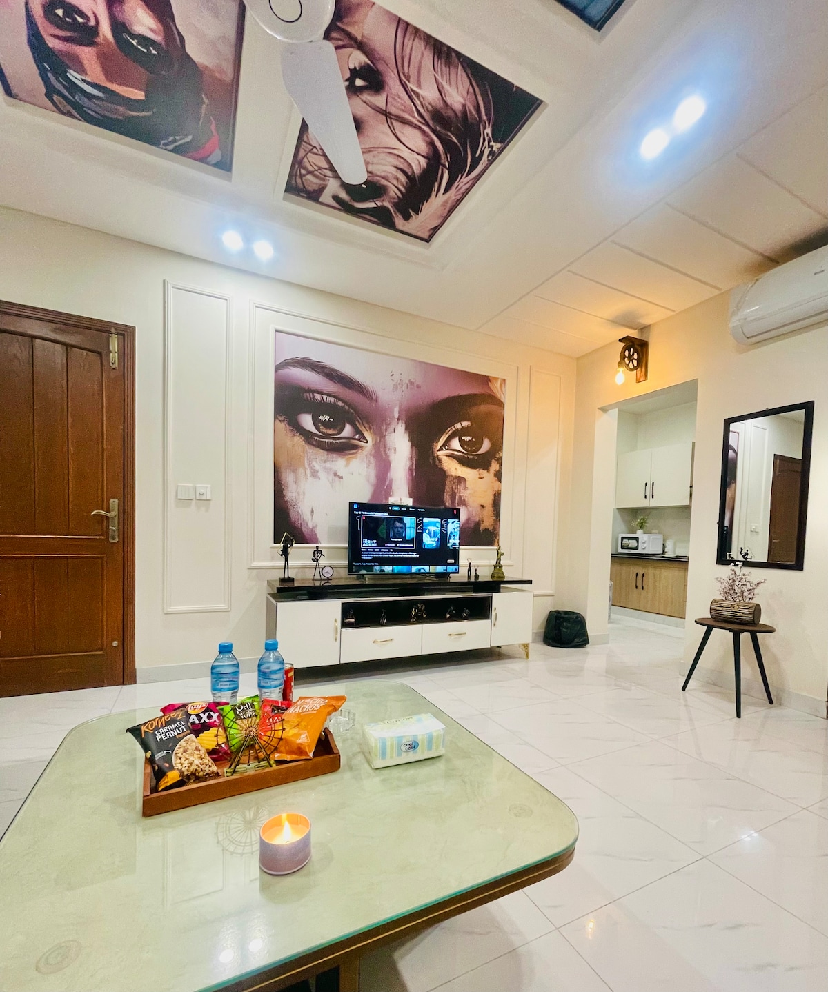 its 5star Ground floor Apartment located at Lush green area on Lower canal road Faisalabad Best for Families, business travelers & groups Its very close to all attractions like kohinoor , D.ground and Lyalpur Galleria. Gated security 24 hrs its on Ground floor with all living facilities 2 Air conditioned rooms with attached baths hot water 1 Living Levish Fully operational kitchen 🌙 Ramzan special wifi+ free Netflix Laundry area with automatic washing machine Food delivery facilities nearby