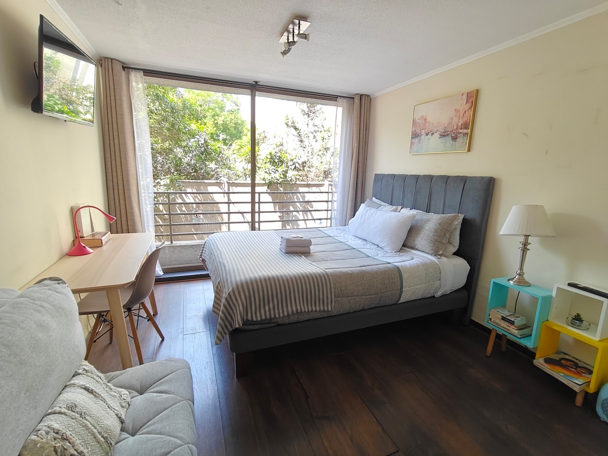 Apto modern dan nyaman di Santiago Centro - Ideal untuk Menjelajahi Kota ✨ 👉Berperabot lengkap dan lengkap, ideal untuk masa inap jangka pendek atau panjang. 👉Wi - Fi berkecepatan tinggi, cocok untuk bekerja jarak jauh. 50¨ 👉Smart TV dengan akses ke platform streaming. 👉Akses ke area bersama umum seperti kolam renang, ruang tamu, dan dua quinchos. Box spring yang 👉nyaman dengan perlengkapan tempat tidur berkualitas hotel yang lembut dan sangat baik. 👉Kamar mandi modern dengan tekanan air panas dan dingin yang baik.