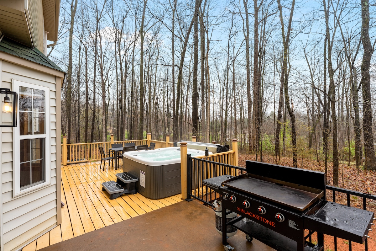 Ruang permainan arkade! ~ Bak mandi air panas ~ Firepit ~ 48A Universal/Tesla EV Charger ~ Griddle BBQ ~ TV 4K besar di setiap kamar tidur ~ 3 King, 1 Queen, 2 tempat tidur susun lengkap ~ Permainan papan ~ Permainan luar ruangan ~ Kilang anggur/kilang bir terdekat, Taman Nasional Shenandoah, Gua Luray ~ Internet berkecepatan tinggi ~ Layanan seluler ~ Ruang kerja khusus ~ Ruang makan besar dan dapur lengkap Selamat datang di Culpeper Manor! ** Rumah liburan kami yang baru direnovasi** luas dan mewah, terletak di lahan berhutan di lingkungan yang damai.