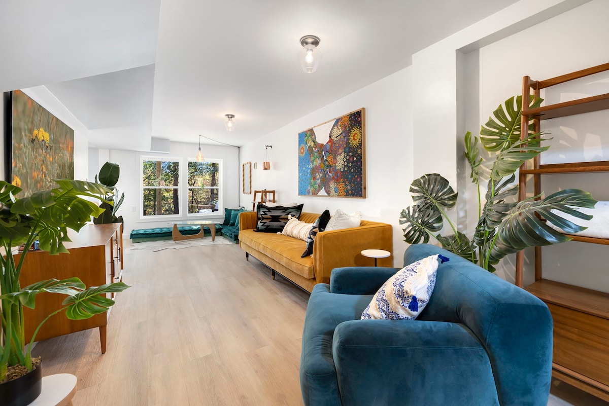 Selamat datang di Rumah Seni kami! Rumah tahun 1955 ini telah dilucuti ke kancing untuk membuat desain ulang kami menjadi hidup dan kami sangat senang membagikannya dengan Anda. Terletak di satu hektar di pusat kota Fayetteville, rumah kami menawarkan lokasi tak terkalahkan yang berada di pusat kota dan terasa terpencil, dua kamar tidur utama, dan teras belakang yang menghadap matahari terbenam. Kami juga telah memilih koleksi seniman lokal yang ditampilkan di setiap ruangan rumah ini. Rumah ini adalah bagian dari koleksi @ boutiqueairbnbs!