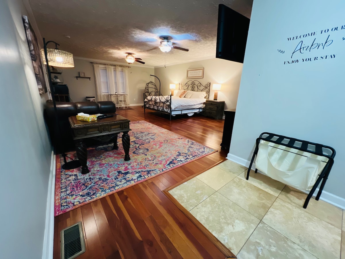 Selamat datang di studio kami, tempat peristirahatan yang nyaman di dekat tempat terbaik di Fayetteville. Tempat ini memiliki pintu masuk pribadi, teras, dan check - in mandiri. Termasuk parkir jalanan yang aman. Nikmati privasi dengan jalur menuju pintu Anda, meskipun studio ini terhubung ke rumah utama. Di dalam: kamar mandi lengkap, tempat tidur king, dan dapur kecil dengan perlengkapan dasar seperti microwave dan mesin pembuat kopi. Ideal untuk perawat perjalanan dan kontraktor yang mencari kenyamanan dan kenyamanan.