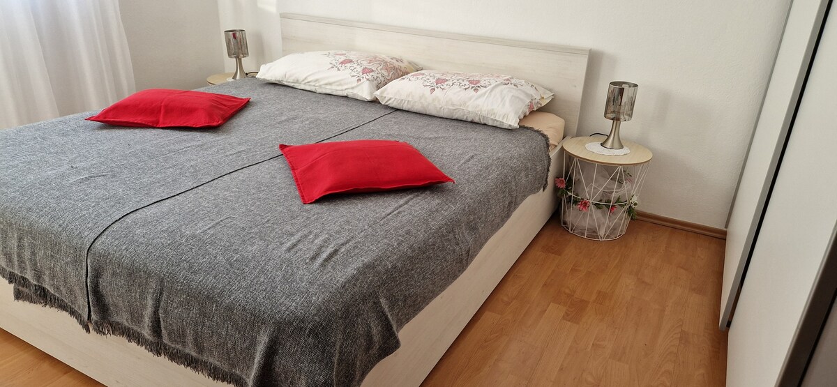 Semua termasuk dalam harga wifi, AC, parkir ,barbekyu! Apartemen berada di 100 m dari pusat Fazana! Pantai pertama di 250m! Banyak restoran di 100m dari apartemen! Stasiun bus, ambulans ,pom bensin semuanya di 200 -300m! Kami punya taman !