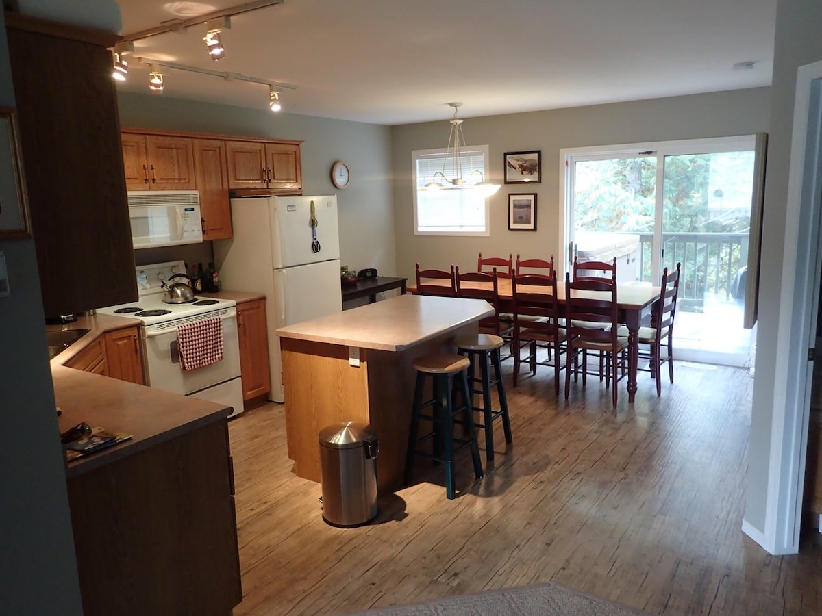 RDEK STR Licence: STR36-24 Perfect chalet on Fernie ski hill for families to really enjoy Beautiful Fernie - Ski, hike, bike, float, golf, discover! Complete UPPER floor. Bright & very spacious, vaulted wood ceilings & wood burning fireplace. Fully equipped newly renovated kitchen. Large dining room table with mountain view, seats all your guests together. Activity table, board games & puzzles. Front deck seating area w beautiful mountain view. Large back deck with dining table, BBQ & hot tub.