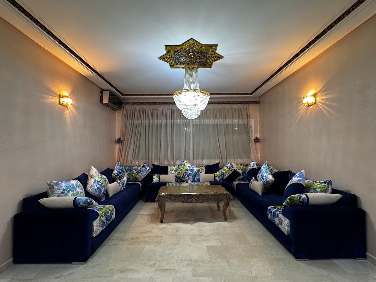 LUXURIOUS AND SPACIOUS: 160m2 - PERFECT TO VISIT THE MEDINA OF FES Double traditional Moroccan modern lounge with large 4K TV and ultra-fast Wi-Fi (optical fiber). Powerful air conditioning/heating system. 3 large bedrooms and 3 bathrooms with 1 shower and 1 bathtub. Ideally located in the center of Fes in a secure building with 24/7 doorman. Free underground parking. 5 minutes from the medina. 2 km from the Fes Royal Palace. 500 meters from the new city of Fes. 12 km from the airport.