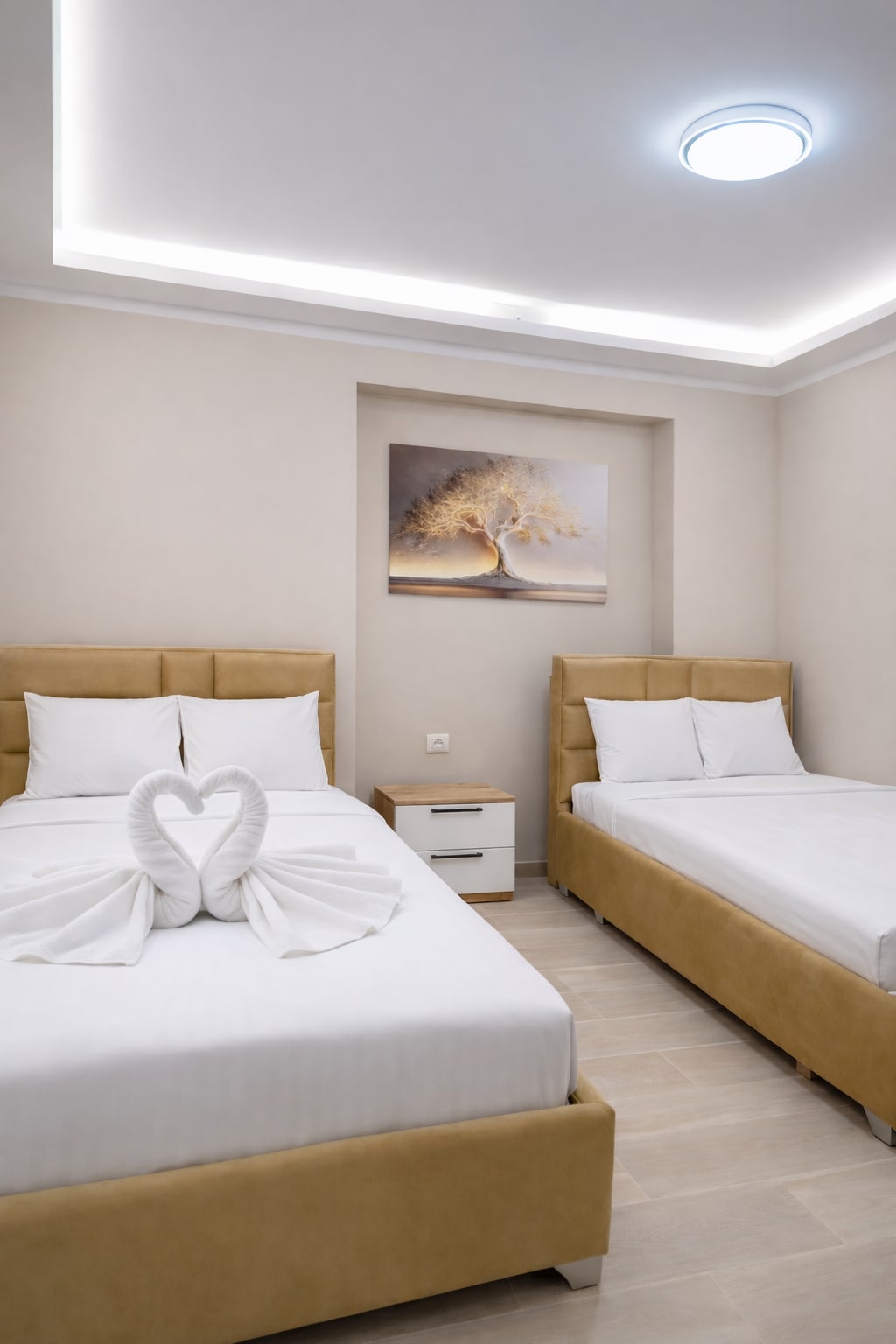 Apartament elegant ne zemer te qytetit, i dizajnuar per cifte qe vleresojne stilin dhe rehatine. Ambient modern, shtrat komod dhe detaje te zgjedhura per nje qendrim relaksues. Vendndodhje premium, prane restoranteve dhe atraksioneve kryesore. Ideal per nje qendrim romantik dhe ekskluziv