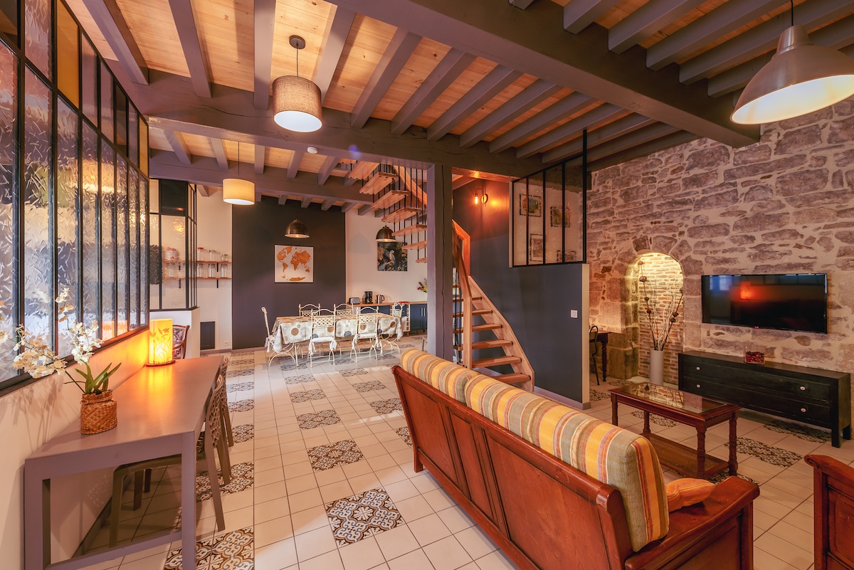 Laissez-vous charmer par le paisible appartement « Le Duplex » niché dans le centre historique de Figeac. La répartition de ses 60m² est fonctionnelle avec rénovation récente : il est prêt à vous accueillir ! Idéalement situé, vous y accèderez par un patio : calme et intimité assurés. Plus besoin de votre voiture, tous les commerces et espaces touristiques sont à proximité. « Le Duplex » est entièrement équipé pour assurer votre confort. Linge de lit et de bain fourni.