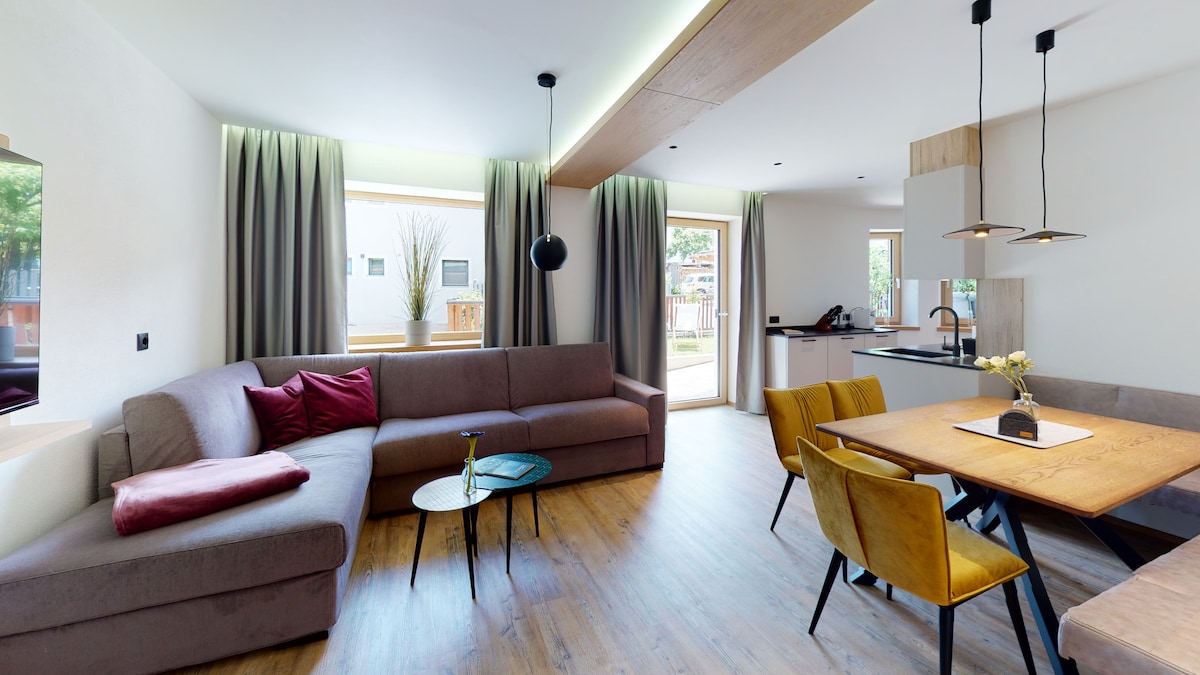 In der Kategorie Junior Suite mit Bergblick erwartet Sie ein über 30 m² großes Apartment für bis zu drei Personen mit Kingsize Doppelbett und einem qualitativ hochwertigem Einzelschlafsofa. Das Apartment verfügt über eine voll ausgestattete Küche mit gemütlicher Sitzecke, einem luxuriösen Badezimmer mit übergroßer Dusche und Waschtrockner sowie über eine 10 m² große Terrasse mit ausreichend Sitzgelegenheiten für ein herzhaftes Frühstück im Freien bei herrlichem Ausblick auf die Tiroler Bergwelt.