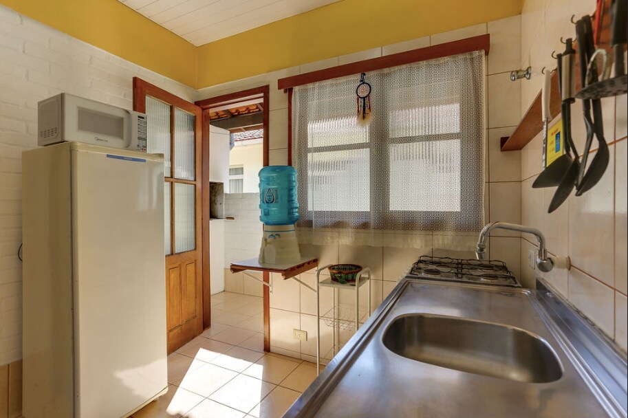 Apartemen yang nyaman dan cerah, di lantai satu, dengan kenyamanan hingga 04 orang. Tempat ini memiliki kamar tidur bergaya matrimonial dengan AC split, lemari pakaian dan tempat tidur di ruang tamu dengan kipas angin langit - langit. Dapurnya luas dan dilengkapi dengan: kulkas, oven, microwave, blender, pemanggang roti, pembuat kopi, dan peralatan lainnya yang diperlukan untuk makan dan memasak. Di bagian belakang terdapat barbekyu dan laundry. TV LCD, Wi - Fi gratis. Termasuk handuk, seprai, dan selimut