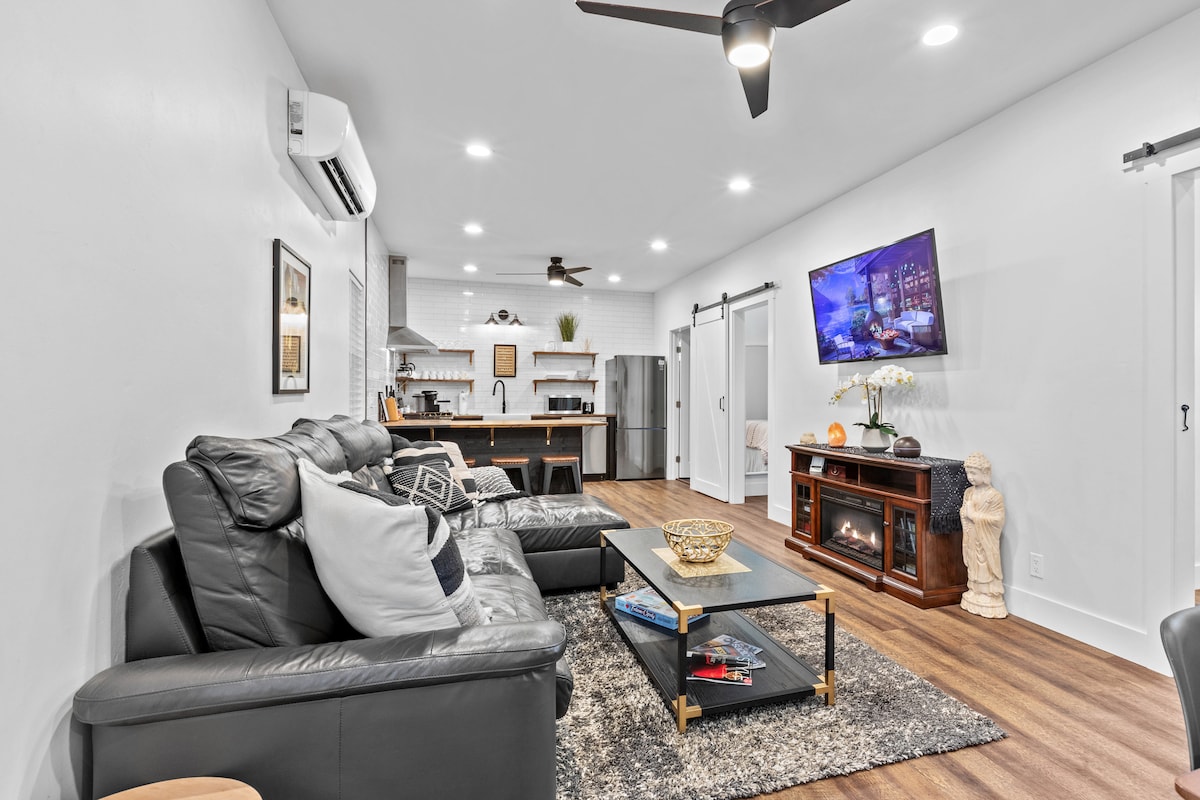 ZEN memenuhi MODERN: Private, luas 2 BR/1 BA Executive Retreat + lounge patio luar ruangan yang besar dengan pemanggang & perapian. Dapur lengkap dengan bar kopi Keurig, kulkas, microwave, kompor, oven & mesin cuci piring LG Suite. Tempat tidur queen di setiap kamar tidur dan di sofa tidur. Pengisian daya Tesla (EV) gratis. Terletak di blok Old Folsom dari Sutter St. Jarak berjalan kaki ke kopi, restoran, bar, pusat perbelanjaan, toko kelontong, jalur sepeda, dan banyak lagi!