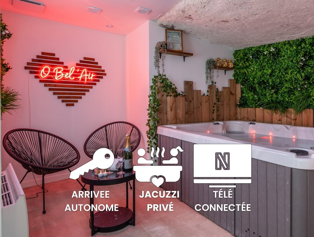 Istirahat yang manis dengan dingin ini. Bersantai di jacuzzi terapeutik yang layak untuk thalasso terindah dan nikmati momen hangat untuk dua orang. Sarapan dan dekorasi romantis opsional. Sepeda listrik, layanan raclette, dan tempat parkir pribadi yang aman tersedia. Liburan musim dingin yang unik, menggabungkan relaksasi, kehangatan, dan pelarian. Semuanya ada untuk memastikan Anda menikmati malam yang menyenangkan dengan tenang sebagai pasangan yang jauh dari hiruk pikuk kehidupan sehari - hari. Sedikit Zen terasa enak. <3