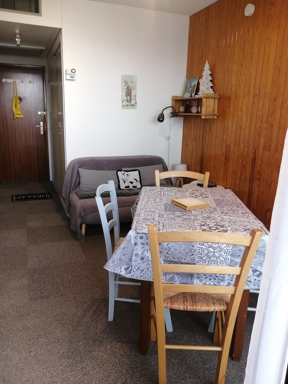 Kami menawarkan Anda untuk disewakan, studio kami untuk 4 orang. Lokasinya di seberang jalan dari kursi pengangkat Full Sun, jadi Anda tidak perlu membawa kendaraan. Tersedia juga parkir gratis di tempat tinggal. Studio ini memiliki teras yang menghadap ke Aigilles d 'Arves dan loker ski. Check in mandiri berkat kotak kunci kami. Pembersihan akhir masa inap adalah tanggung jawab penyewa.