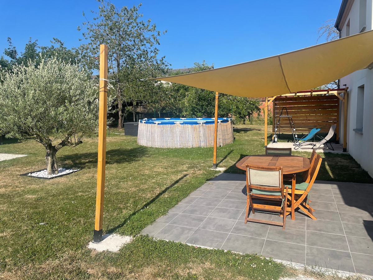 Rumah kecil yang menawan di Marles - en - Brie (77), terletak di bagian belakang taman untuk ketenangan mutlak. Hanya 35 menit dari Paris (Transilien jalur P) dan 20 km dari Disneyland dan banyak aktivitas lainnya. Ideal untuk 4 orang dengan tempat tidur queen size (160x200) di mezzanine dan tempat tidur sofa yang nyaman (140x190). Dengan kamar mandi modern, dapur kecil yang lengkap, TV, wifi, dan AC, tempat ini juga menawarkan teras yang disiapkan untuk momen relaksasi yang tak terlupakan.